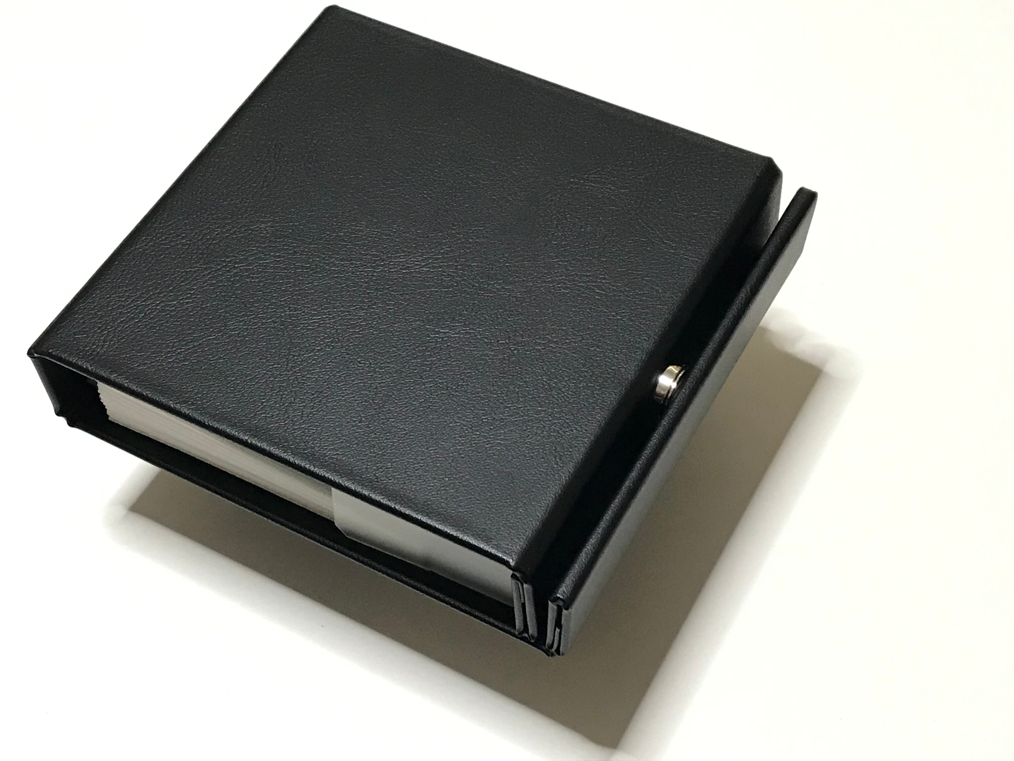 5インチディスク(CD/DVD/ブルーレイ) 15枚収納  寸法=縦154㎜×横170㎜×厚33㎜/重量85g  材質=布張り強化コルゲート紙/3層不織布/マグネットホック/PPシート /日本製